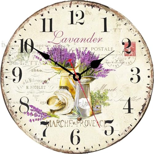 TAHEAT Lavender Wall Clock, Small Unusual Floral Provence Kitchen Clocks, Lovely Countryside Wall Clocks for Living Room Bedroom Bathroom Office, 8 Inch