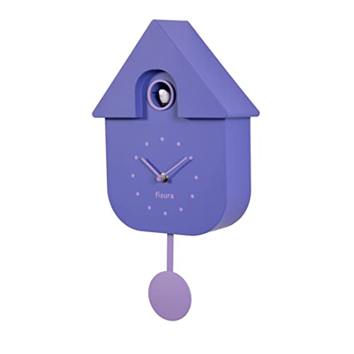 Fisura - Purple cuckoo clock. Original wall clock for gift. Modern and colorful wall decoration 3 AA batteries not included, ABS plastic, 21,5 x 8 x 41,5.
