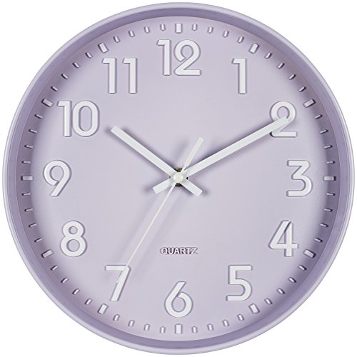Bernhard Products Purple Wall Clock 10 Inch, Silent Non-Ticking, Quality Quartz 3D Numbers Battery Operated Round Pretty Clock for Bedroom/Kitchen/Office/Nursery Room