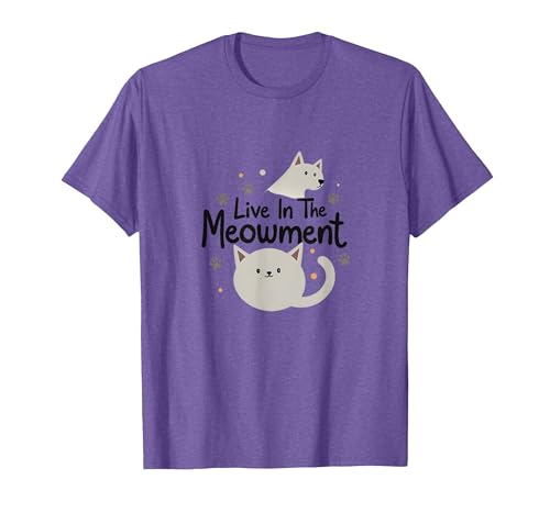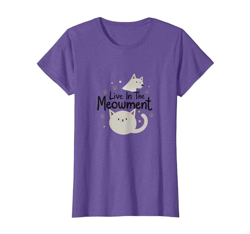 Live in The Meowment: Cute Cat Lover Word Game T-Shirt, Women, Purple Heather, XXL