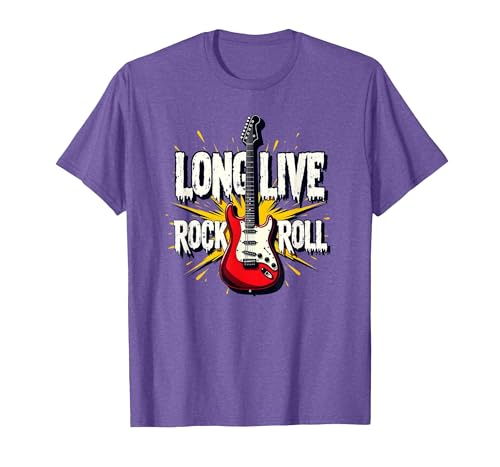 Long Live Rock & Roll - Iconic Guitar for Music Lovers T-Shirt, Men, Purple Heather, XXL