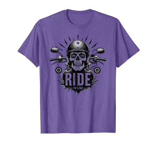 Live to Ride Ride to Live Motorcycle Skull Biker Rebel T-Shirt, Men, Purple Heather, XXL