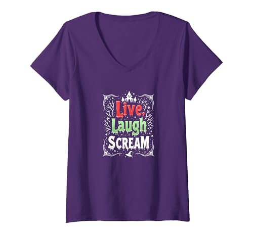 Live, Laugh, Scream: Spooky Halloween Humor V-Neck T-Shirt, Women, Purple, XXL