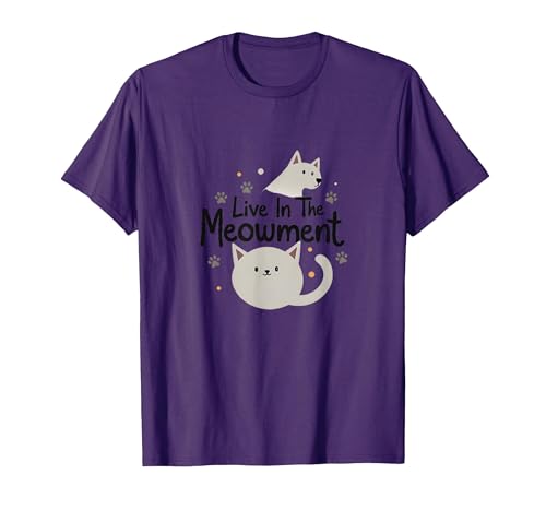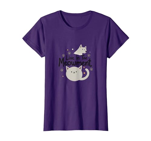 Live in The Meowment: Cute Cat Lover Word Game T-Shirt, Women, Purple, XXL