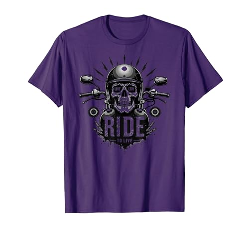 Live to Ride Ride to Live Motorcycle Skull Biker Rebel T-Shirt, Men, Purple, XXL