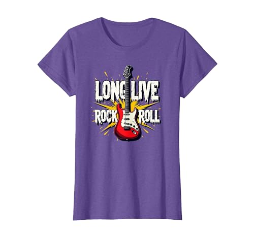 Long Live Rock & Roll - Iconic Guitar for Music Lovers T-Shirt, Women, Purple Heather, XXL