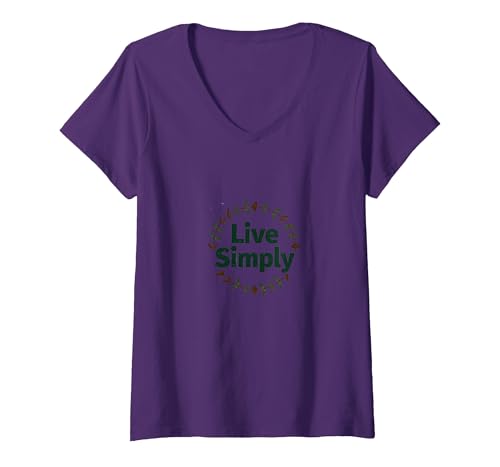 Live Simply: Minimalist Nature Wreath Inspirational V-Neck T-Shirt, Women, Purple, XXL
