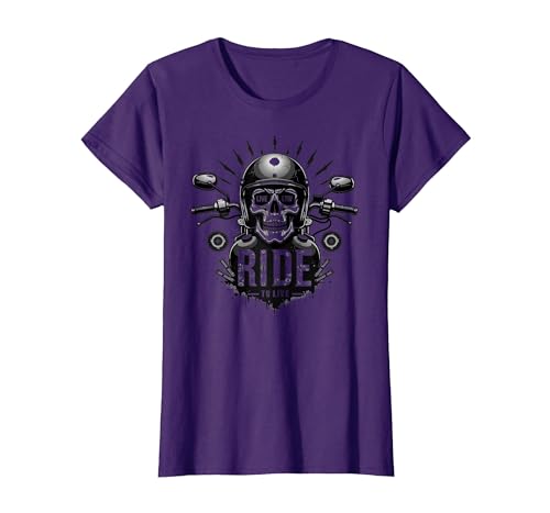 Live to Ride Ride to Live Motorcycle Skull Biker Rebel T-Shirt, Women, Purple, XXL