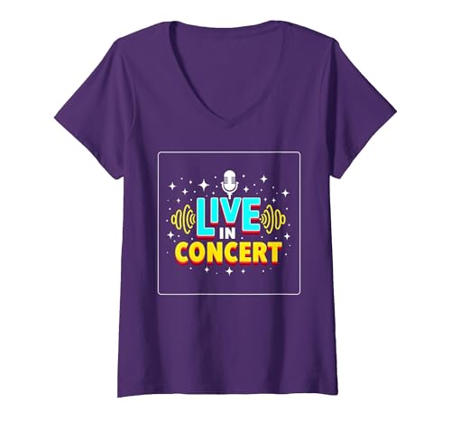 Live in Concert: Retro Music Event V-Neck T-Shirt, Women, Purple, XXL