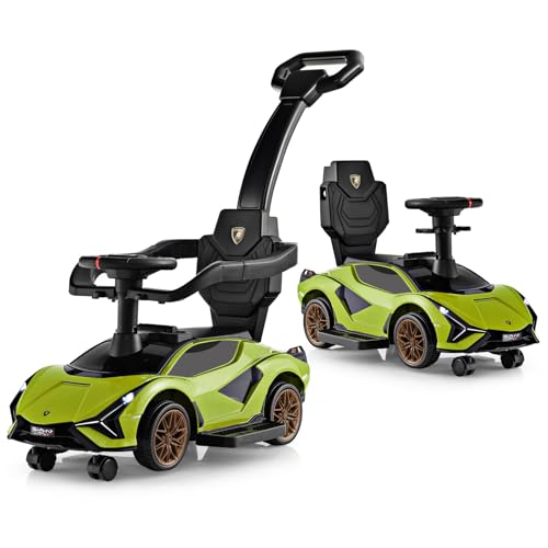 Maxmass 3-in-1 Ride on Push Car, Licensed Lamborghini Toddler Sliding Walker with Removable Guardrails, Music, Headlights and Underneath Storage, Kids Push Along Sit on Car for 18-60 Months (Green)