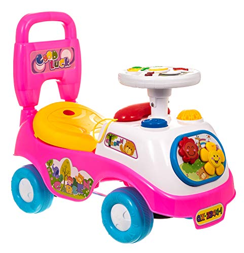 Hillington My First Ride On and Push Along Buggy Car Colourful First Steps Toddler Walker Learning Toy with Sounds and Accessories (Pink)