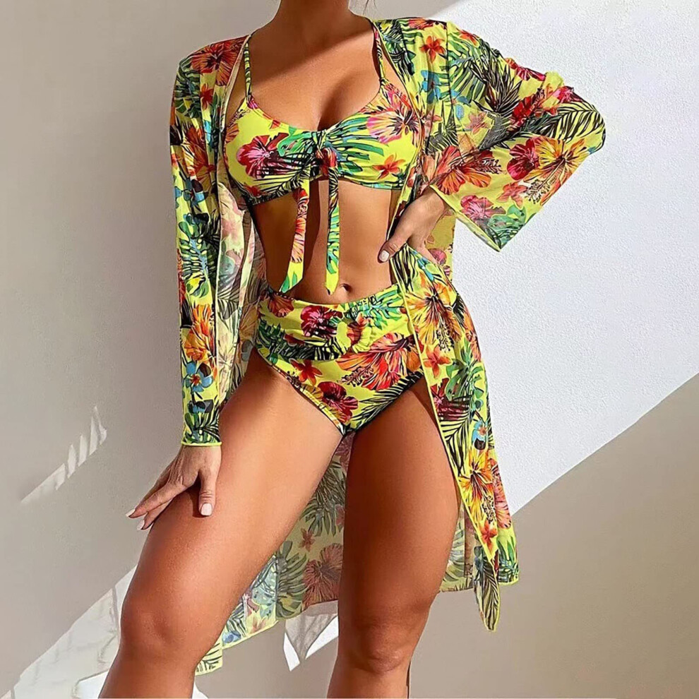 (Fluorescent Yellow, 3XL) Bikini Bathing Suit with Cover Up Sexy Floral Printed Push Up Bikini Swimsuit for Travel Summer Vacation