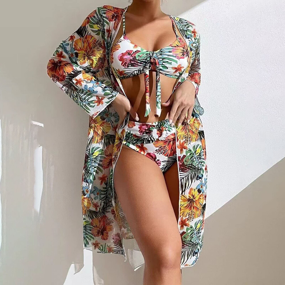 (White, M) Bikini Bathing Suit with Cover Up Sexy Floral Printed Push Up Bikini Swimsuit for Travel Summer Vacation