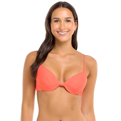 Body Glove Women's Smoothies Greta Solid Molded Cup Push Up Underwire Bikini Top Swimsuit, Sunset, Medium