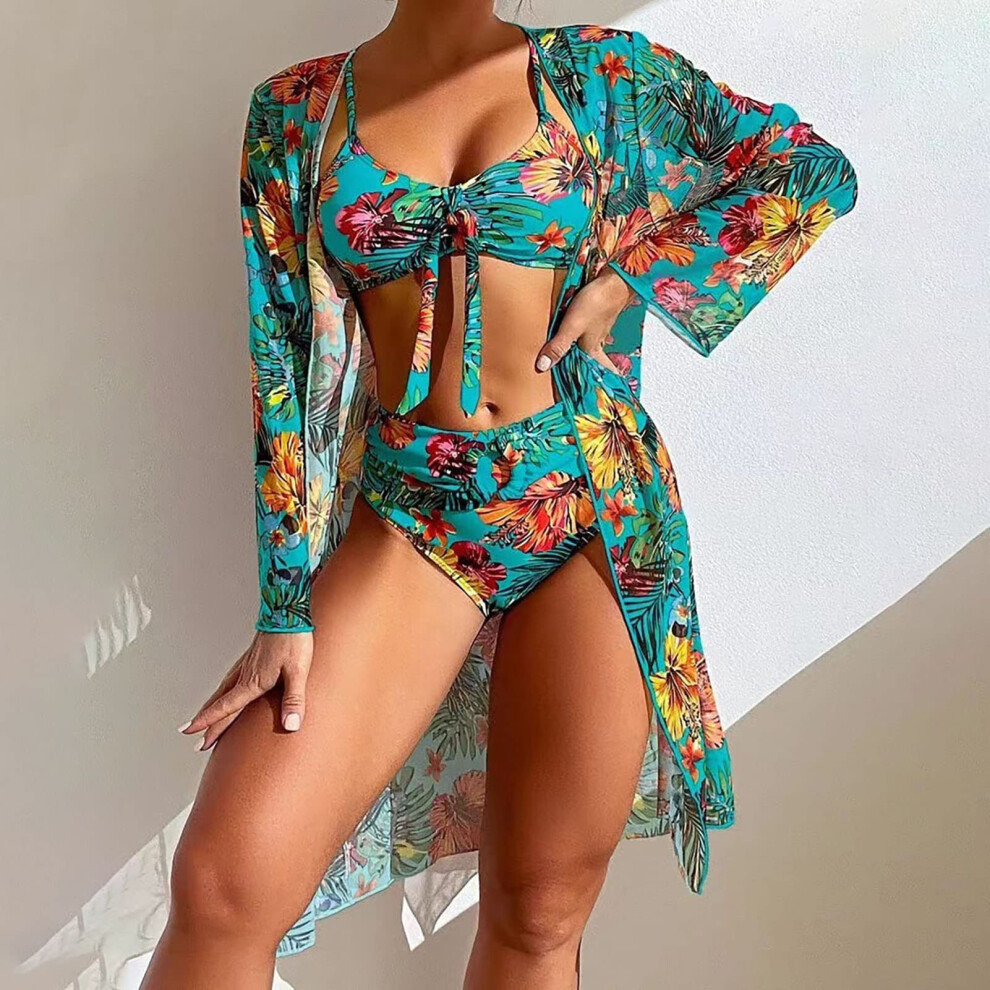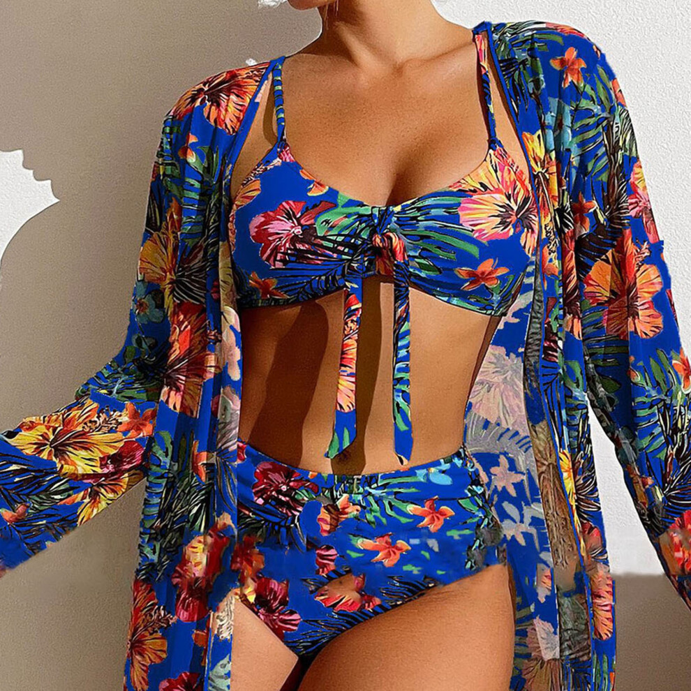 (Blue, 3XL) Bikini Bathing Suit with Cover Up Sexy Floral Printed Push Up Bikini Swimsuit for Travel Summer Vacation