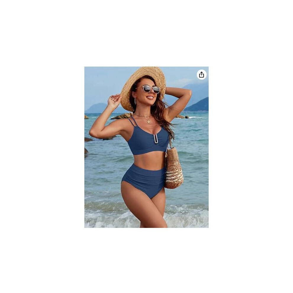 Push Up Bra Swimsuit for Women, Moderate Coverage Bottom Two Piece Swimsuit with High Waisted Bikini and Breathable Material, Tummy Control