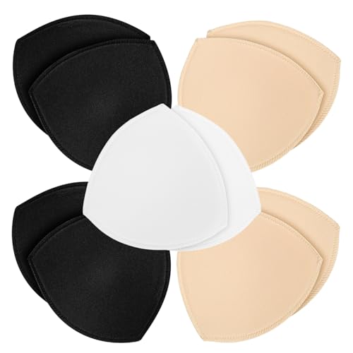 SKENGWEL 5 Pairs Women's Triangle Bra Pads Insert, Bra Pads Inserts push up Swimsuit Inserts, For Bikini Top Swimsuit (2 Pair Beige 2 Pair Black 1 Pair White) (5 pairs C/D 3 Color)
