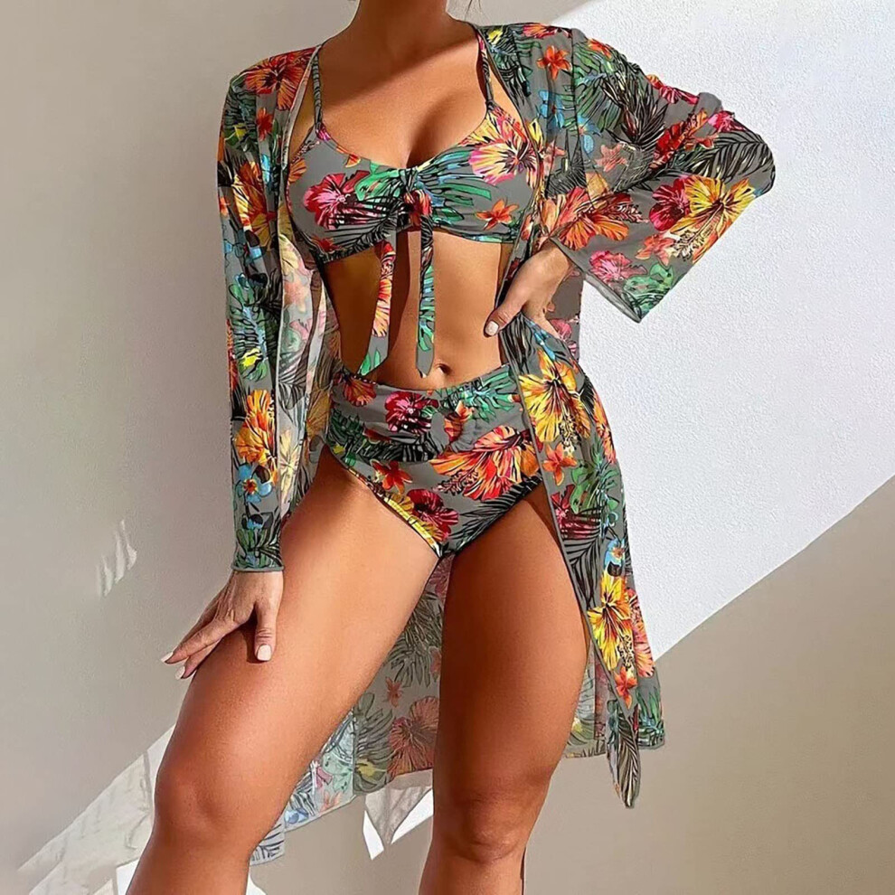 (Gray, 3XL) Bikini Bathing Suit with Cover Up Sexy Floral Printed Push Up Bikini Swimsuit for Travel Summer Vacation