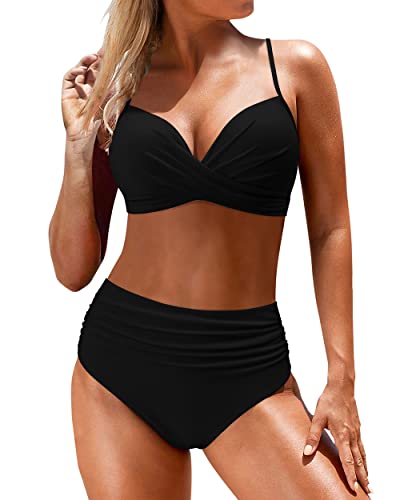 Axvxby Women's Bikini Set Sexy Triangle String Bikini Top High Waist Bottoms Adjustable Ties Push up Beachwear Comfortable Swimsuit for Summer Black
