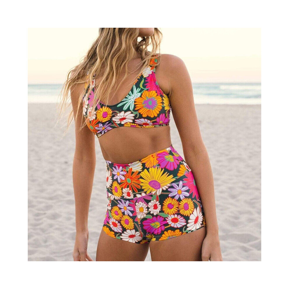 Young Sexy Girl Floral Short Bikini Two Piece Push Up Swimsuit For Women High Waist Boy Short Swimwear Trunks Bathing Suit
