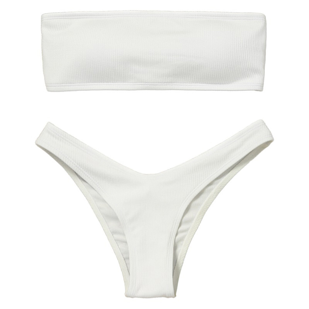 Bikini Sets for Women,Bandeau Bandage Bikini Set with Push Up Brazilian Swimsuit for Beach and Pool Activities Swimwear,Womens Bikini,White,S
