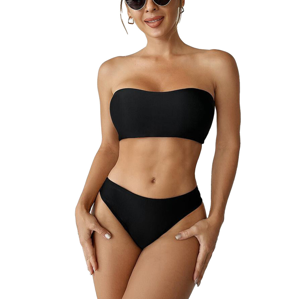 Bikini Sets for Women,Bandeau Bandage Bikini Set with Push Up Brazilian Swimsuit for Beach and Pool Activities Swimwear,Womens Bikini,Black,XL