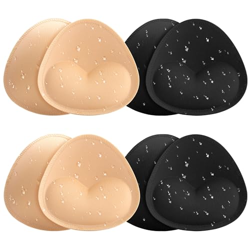 Aiwosana Waterproof Bra Inserts Pads 4 Pairs,Push up Bikini Swimsuit Inserts for Women Sewn Padded Sports Bra