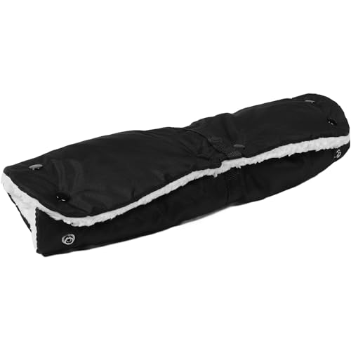Orzbow Pram Gloves, Warm Pram Hand Muff with Faux Woolen Fleece, Pushchair Hand Muff with Phone Pocket, Weatherproof Fabric, Extreme Comfort, Tight Fit, Pram Gloves for Stroller in Winter, Black