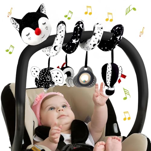 XIXILAND Pram Toys Black and White Sensory Toys 0 6 Months, Car Seat Toy for Pushchair Stroller/Car Seat/Crib/Cot, Spiral Pram Baby Newborn Toy for 0 3 6 9 12 Months Boys Girls Babies