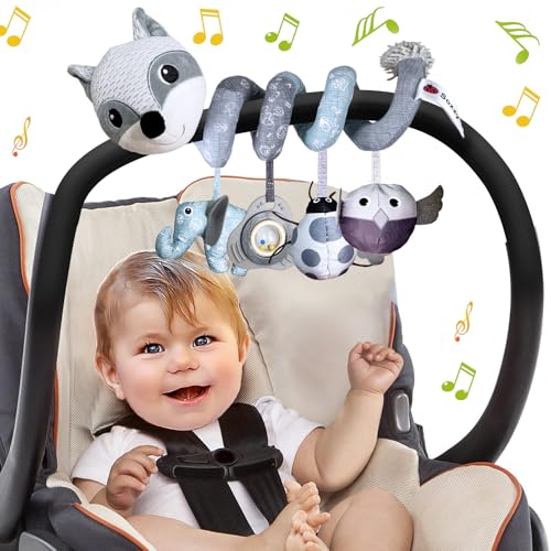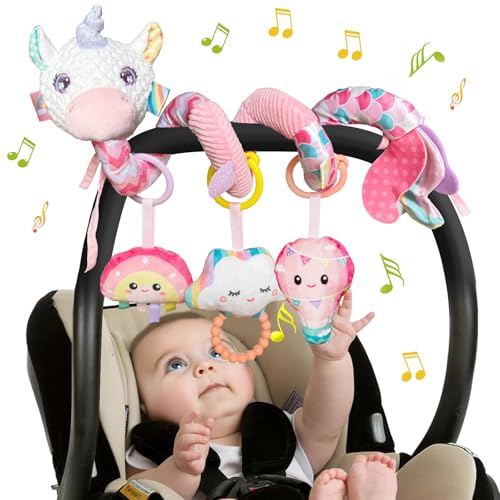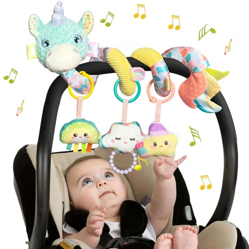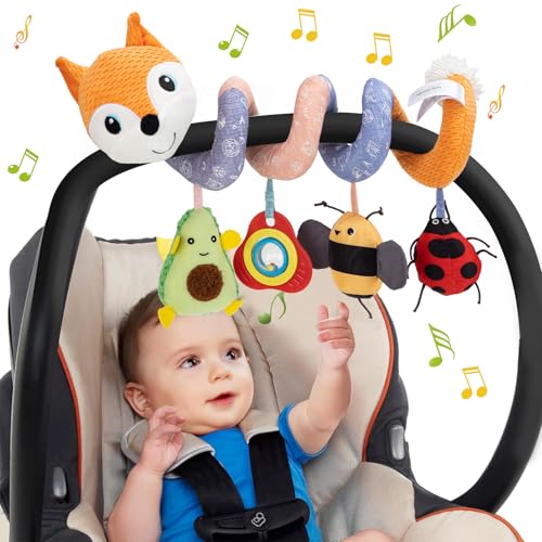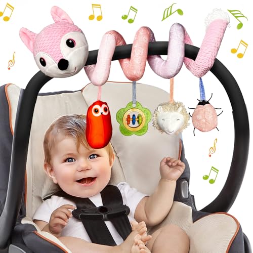 XIXILAND Pram Toys for Babies 0-6 Months Car Seat Toy, Newborn Spiral Hanging Toys for Babies, Baby Sensory Toys for Pushchair Stroller/Car Seat/Crib/Cot, Gift for 0 3 6 9 12 Months Boys Girls