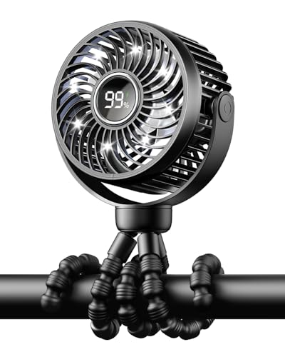 SWEETFULL Portable pram fan, LED Display 4000mAh Battery Operated Mini Stroller Fan, 4 Speed Rechargeable Small Personal Fan Handheld Desk Cooling pushchair Fan For Car Seat Crib buggy