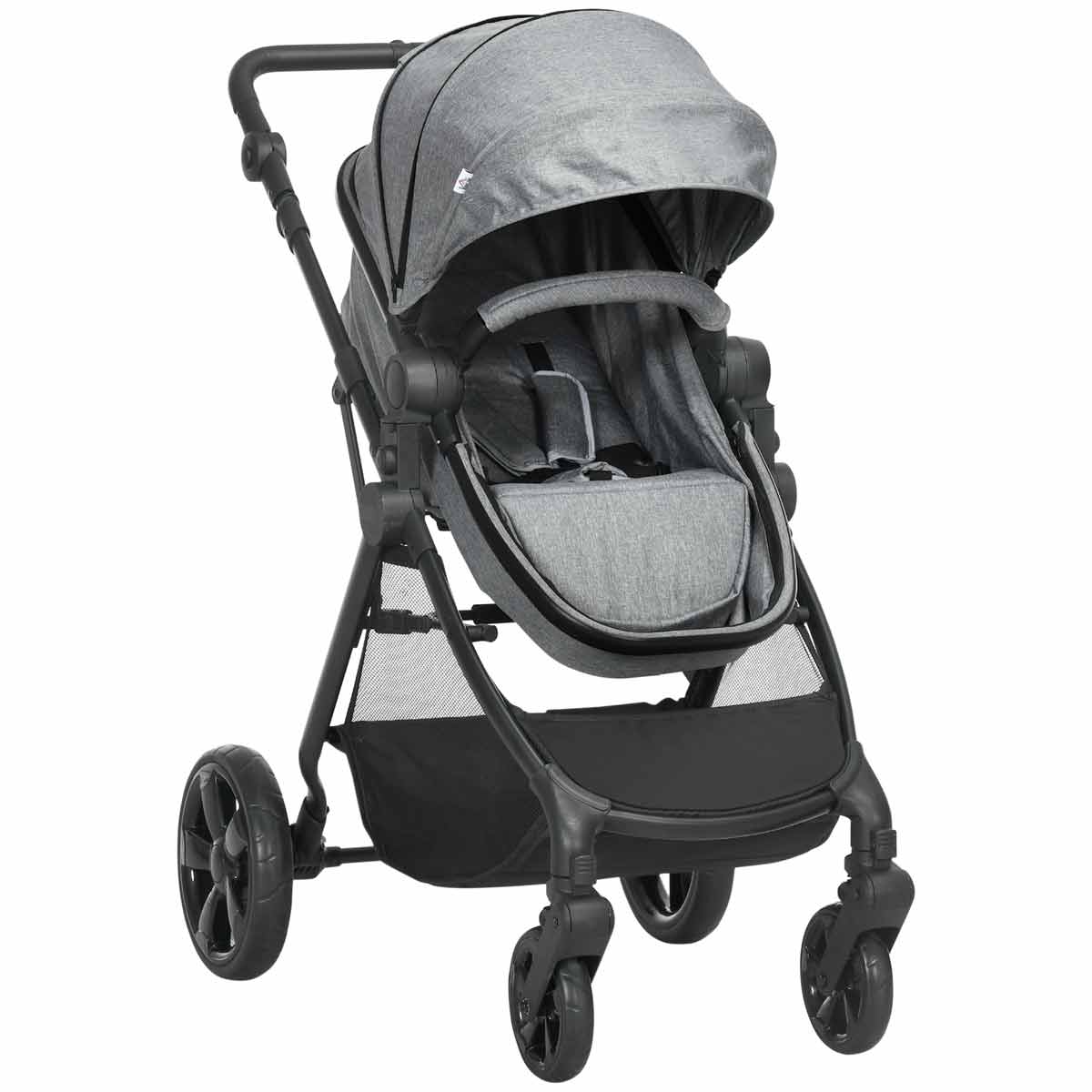 Homcom Two-in-one Foldable Pushchair with Reversible Seat, Sun Canopy Grey, Grey