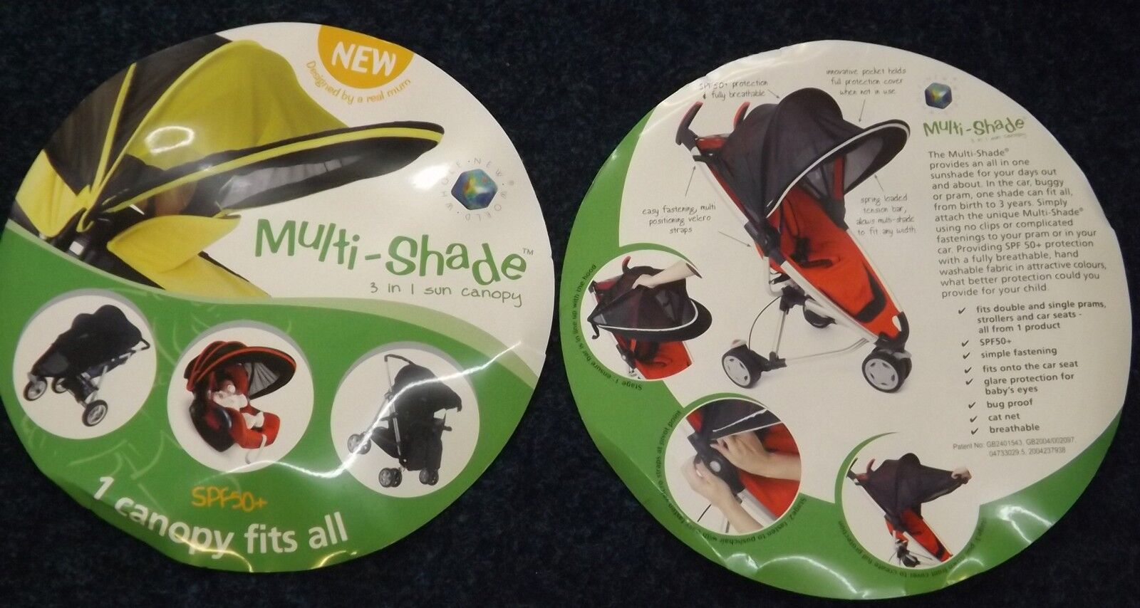 New Black Multi Shade 3 In 1 Sun Canopy Universal Pram/Pushchair /Fast Delivery