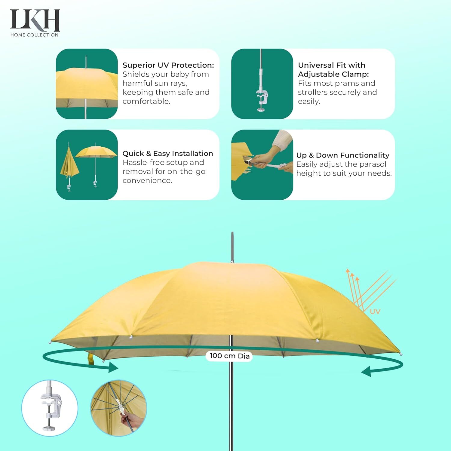 Stroller Sun Cover, Pushchair Sunshade Parasol, Easy Installation UV Block Canopy, Lightweight Stroller Awning, Outdoor Protection for Walking, Camping, Picnic, Shopping, Outing Use, Multicolor