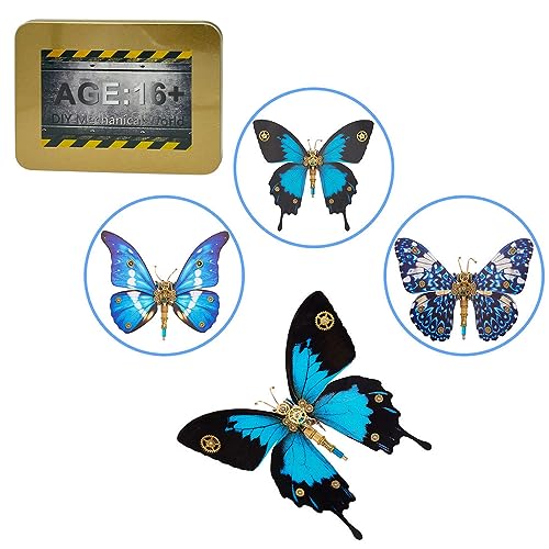 3-in-1 Mechanical Steampunk Butterfly 3D Metal Puzzle 200+PCS Brain Teaser DIY Assembly Kit with Interchangeable Wings for Adults and Teens Home Display(Blue)