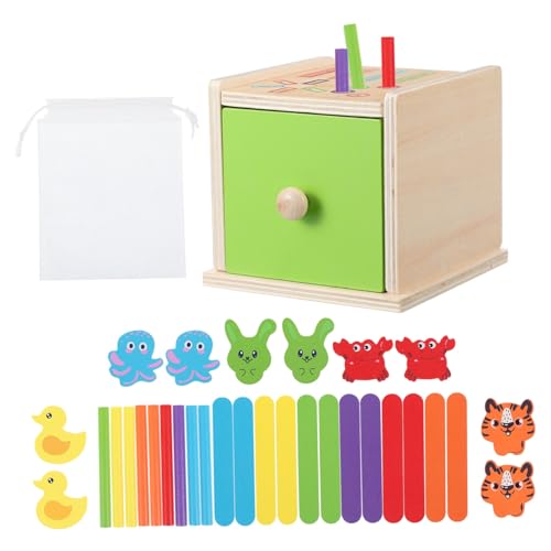 GALPADA Montessori Wooden Color Sorting Bright Educational Shape Sorter Puzzle with Animal Patterns and Sticks Early Learning Game for Color and Shape Recognition Fine Motor Skills