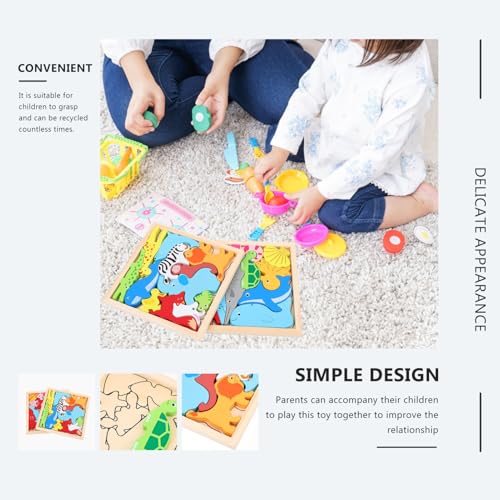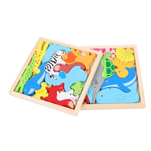 FRCOLOR 2 Sets Stackable Wooden Animal Shape Sorter Puzzle for Educational Jigsaw for Intelligence Development DIY Cartoon Animal Board Game for Spatial Imagination and Color Recognition