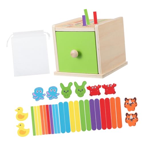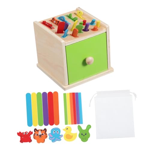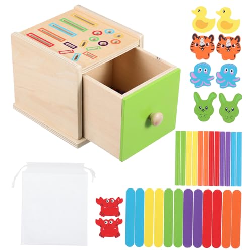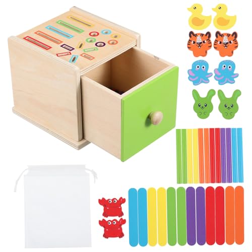 OUNONA Montessori Wooden Color Matching for Early Education Shape Sorter Puzzle with Animal Patterns Round and Popsicle Sticks Cognitive Development and Fine Motor Skills Game