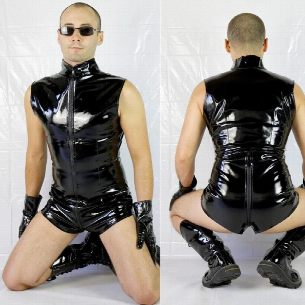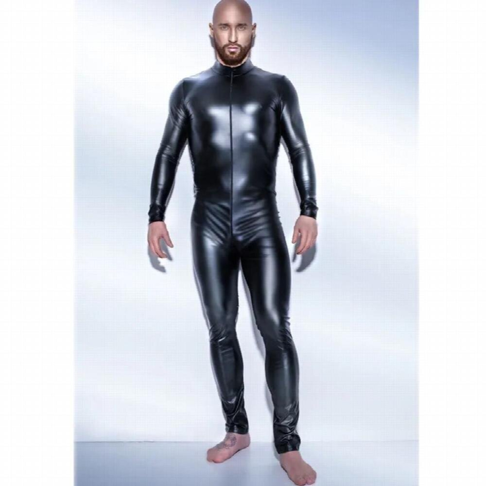 (M) Male Exotic Sexy Faux Leather Bodysuit Front Zipper Pvc Latex Teddies Catsuit Male Gay Erotic Fetish Jumpsuits Club Wear Costume