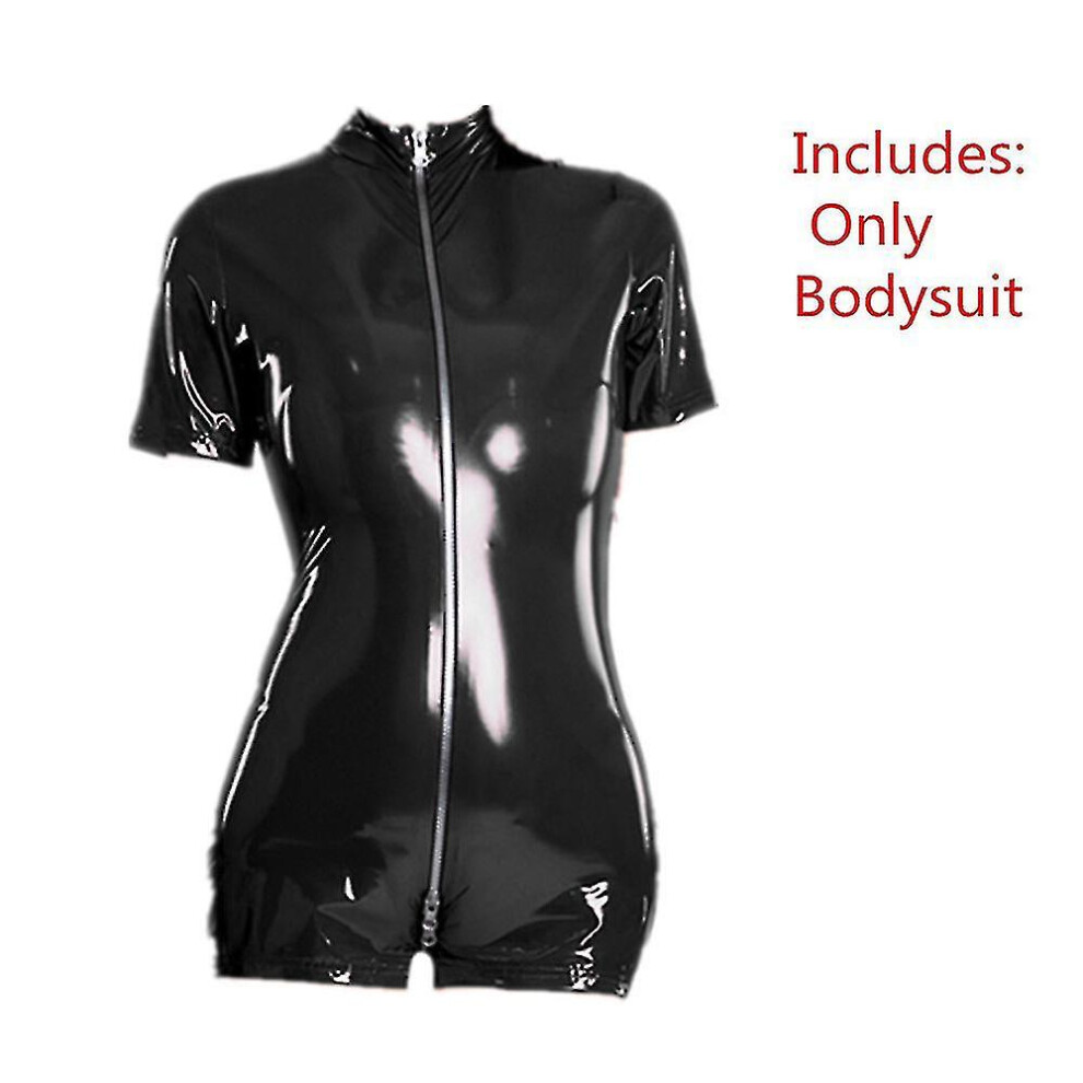 Short Latex Wet Look Bodycon Catsuit Sexy Faux Leather Bodysuit Erotic Catsuit PVC Jumpsuit Clubwear Dance Costume