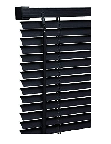 PVC Plain window Venetian Blinds - 25mm Slats - 165cm x 150cm Size - Black Colour - Included Open/Close Wand Control Mechanism