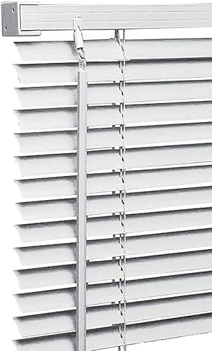 PVC Plain window Venetian Blinds - 25mm Slats - 165cm x 150cm Size - White Colour - Included Open/Close Wand Control Mechanism