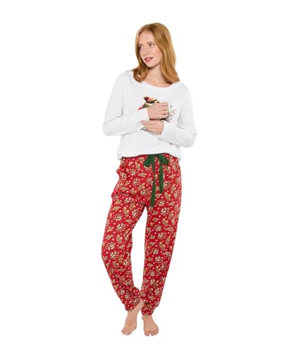 Joe Browns Women's Festive Robin Cuffed Pyjama Set Pajama, Red, L