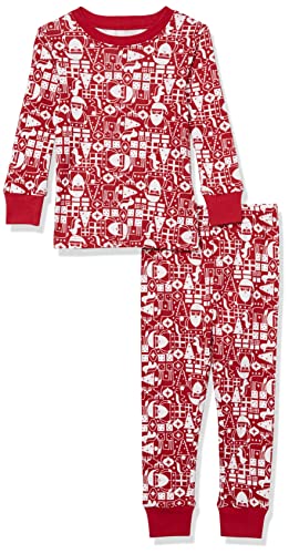 Amazon Essentials Unisex Babies' Snug-Fit Cotton Pyjama Sleepwear Sets, Red Mono Santa, 24 Months