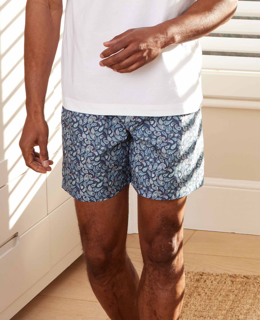 Savile Row Company London Men Cotton Paisley Print Pyjama Shorts in Blue | Size: large