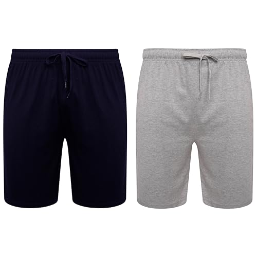 Sock Stack Mens Lounge Shorts Pyjama Jersey PJ Short for Men Organic 60% Cotton Rich Pajama Pack of 2, Navy/Grey XX Large