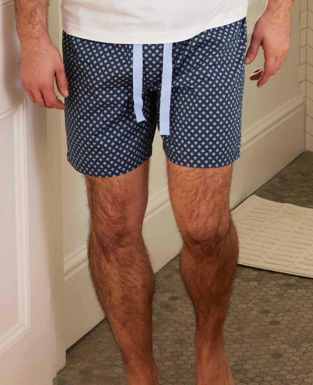 Savile Row Company London Men Cotton Fleur De Lys Print Pyjama Shorts in Blue | Size: 2X-large
