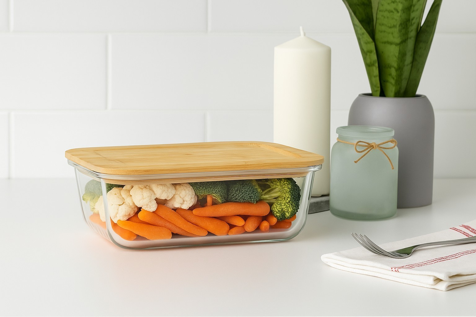 Rectangular Glass Food Container with Bamboo Lid Airtight Meal Prep Box Reusable