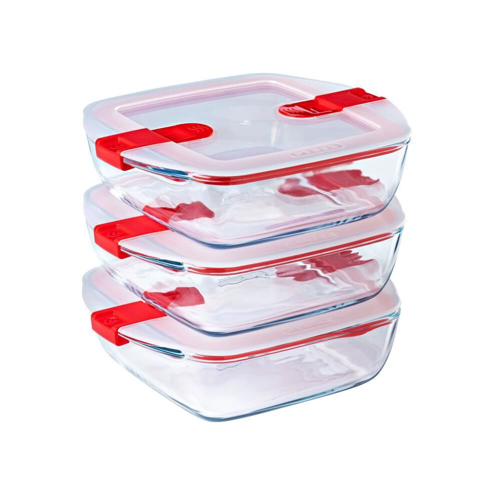 Pyrex Cook and Heat Cook & Heat Set of 3 Square Glass Food Containers with Airtight Lids for Microwaves