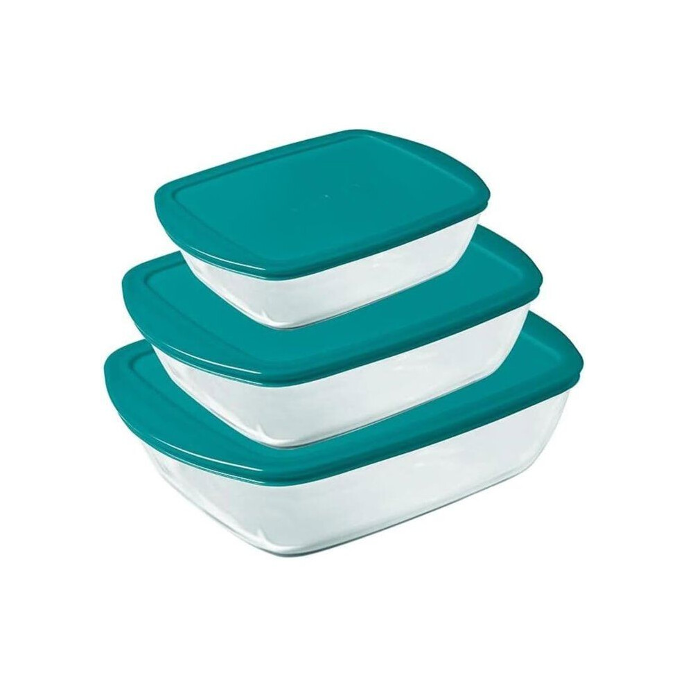 Pyrex Cook Store Set of 3 Rectangular Glass Food Storage Dishes with Lids 04L 11L 25L BPA Free